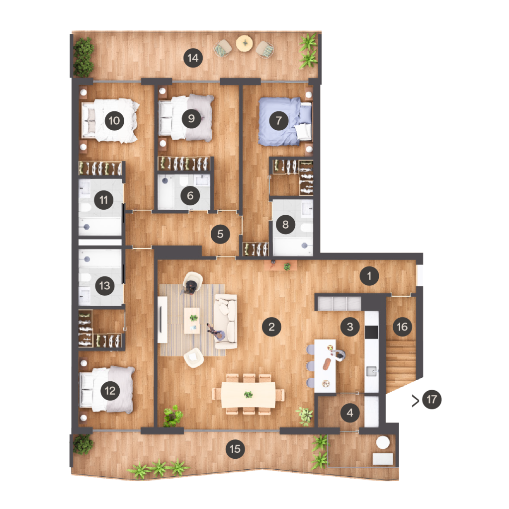 A escolha de materiais de qualidade e de design intemporal reforça a durabilidade e o conforto dos espaços, acompanhando o dia-a-dia com modernidade e garantindo uma experiência de habitar pensada hoje para o conforto do amanhã.